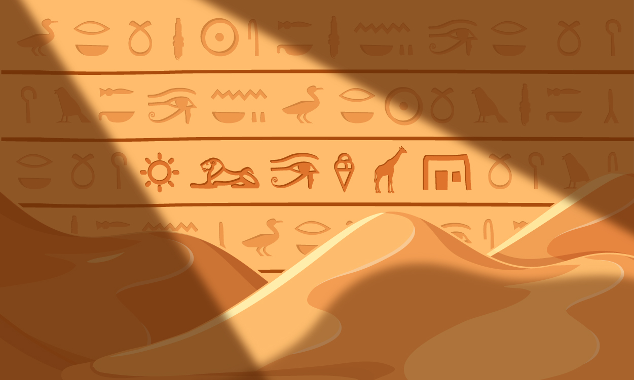 “Calm down, Sparky,” said Santa soothingly. “I think I’ve spotted something that will help us to find our sleigh again. Never fear, Santa is here!” cried Santa and set off in the direction of some hieroglyphics he’d seen hiding between the pyramids.